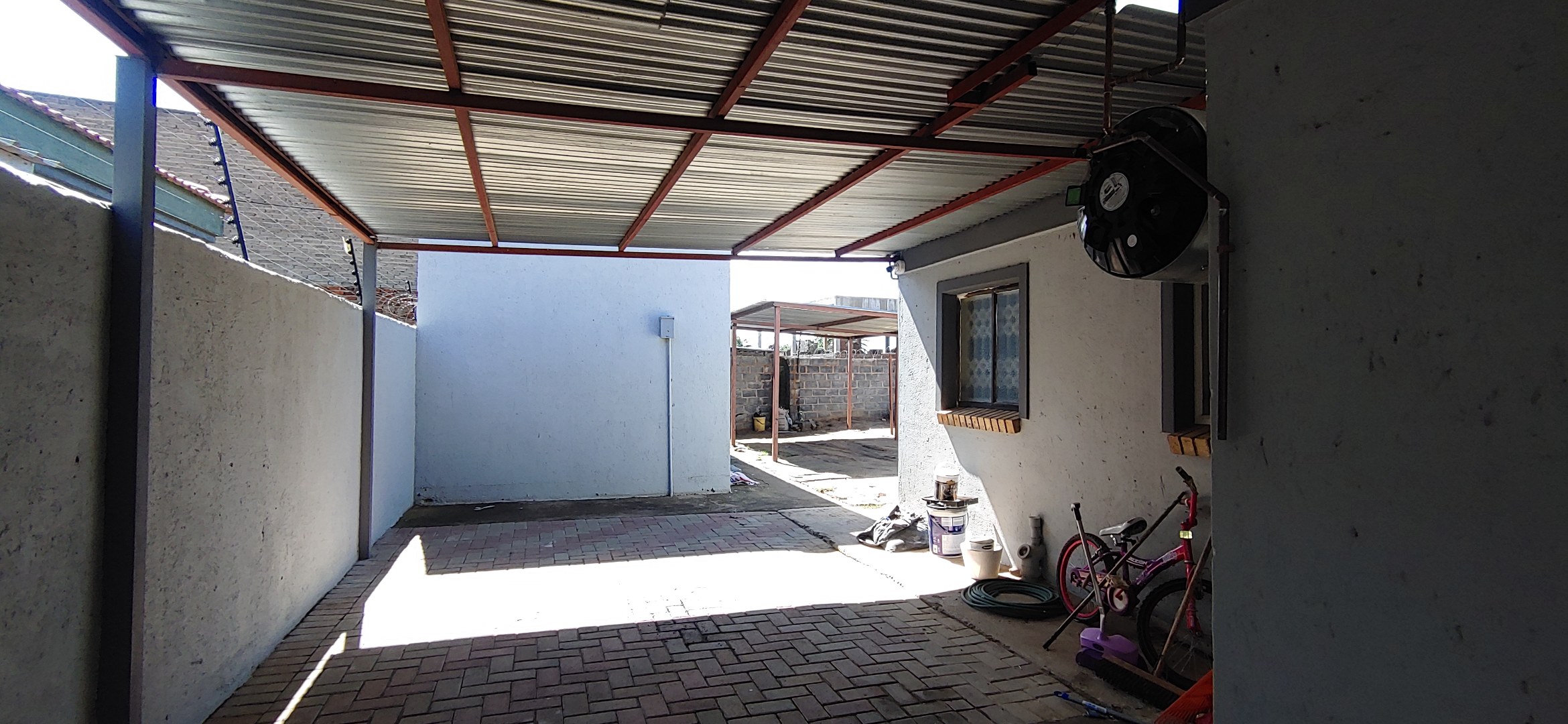 The house offers 3 Bedrooms, 2 bathrooms (main en-suite) Open plan Lounge / kitchen. Kitchen has lots of cupboards and a stove. There is a double carport with a remote control garage door, for safe parking.